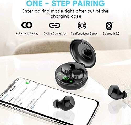Perfecto Para Deportivos: Cómodo diseño de 120° en la oreja, de acuerdo con los principios ergonómicos, el auricular inalámbrico Bluetooth solo pesa 3.5 gramos, puede proporcionar un ajuste cómodo y firme al contorno de su oreja. Con tres tamaños de bluetooth los auriculares S/M/L, elija el que mejor se adapte a sus oídos, NO se preocupe por que se caigan incluso cuando está corriendo.
