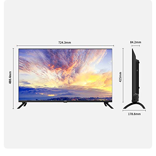 ✅ TV LED HD con pantalla diagonal de 80 cm (32 pulgadas), diseño sin marco, negro, conjunto acabado armonioso, dimensiones del diseño con soporte: 72,4 x 47,1 x 18,1 cm, sin soporte: 72,4 x 42,5 x 8,8 cm.