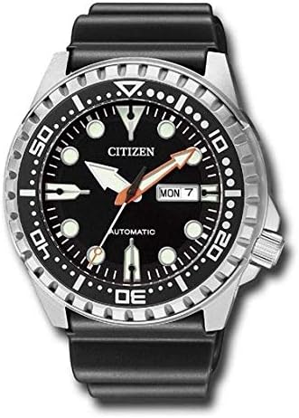 Reloj mecánico para hombre de la marca Citizen. La carcasa está fabricada en acero inoxidable plateado. La esfera negra está equipada con indicador de fecha, manecillas fluorescentes y marcadores puntuales. Un cristal resistente protege la esfera de agentes externos. La carcasa tiene un diámetro de aprox. 46 mm. La pulsera está hecha de uretano negro y proporciona una agradable comodidad. La pulsera se cierra de forma segura con una hebilla.