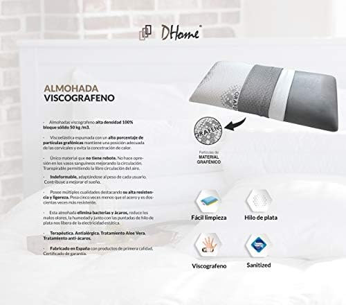 Almohada con viscoelástica espumada con un alto porcentaje de partículas grafénicas, mantiene una posición adecuada de las cervicales y evita la concentración de calor.