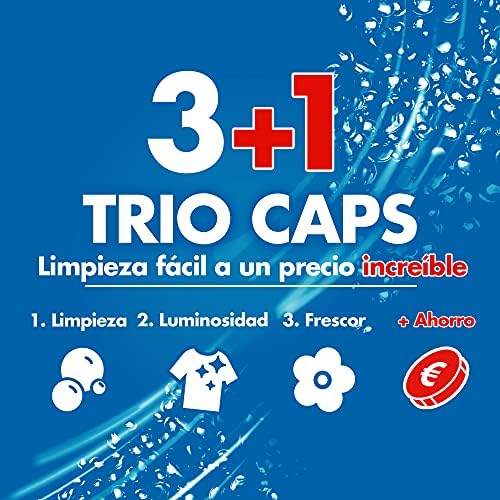 Dixan Detergente Trio Caps Universal es un detergente único pre-dosificado para ropa blanca y de color claro, que proporciona grandes resultados de lavado a un precio inteligente. Combina tres potentes potencias en una sola cápsula para una colada higiénicamente limpia. Gracias a su exclusiva tecnología de limpieza, las diferentes potencias garantizan la limpieza, la luminosidad y el frescor de sus prendas, ofreciendo una eliminación de las manchas incluso a bajas temperaturas. Las Trio Caps, en su cómoda forma pre-dosificada, vienen en un envase práctico de almacenamiento. o Detergente Trio Caps Universal da Dixan é um detergente único pré-dosado para roupas brancas e de cor clara, que proporciona excelentes resultados de lavagem a um preço inteligente. Combina três potentes potências numa única cápsula para uma lavagem higiénica limpa. Graças à sua exclusiva tecnologia de limpeza, as diferentes potências garantem a limpeza, a luminosidade e a frescura das suas roupas, oferecendo uma eliminação de manchas mesmo a baixas temperaturas. As Trio Caps, em sua forma conveniente pré-doseada, vêm em uma embalagem de armazenamento conveniente.