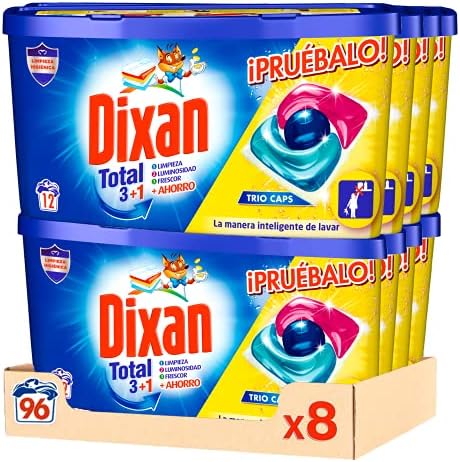 Detergente universal: Dixan Detergente Trio Caps tiene 3 cámaras y se puede usar para ropa blanca y de color claro, proporcionando resultados luminosos y frescos. Tecnología de limpieza única.
