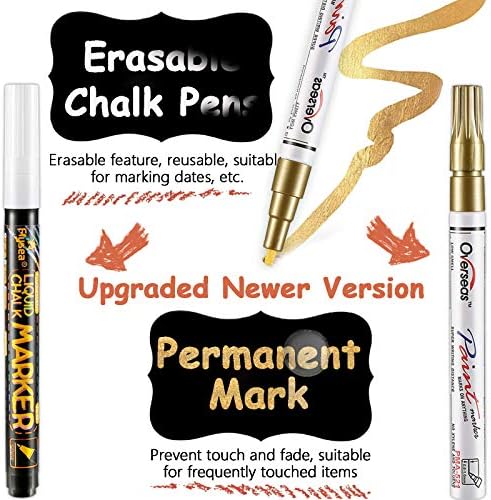 👍 Rotuladores de tiza de alta calidad: 1 rotulador permanente a prueba de agua (punta de 1 mm) con color champán y no borrable, 1 rotulador blanco borrable (punta de 1 mm) En comparación con los bolígrafos ordinarios, puede escribir colores más largos y claros. El bolígrafo de tiza blanca se puede reutilizar, no importa cuántos errores cometa, simplemente límpielo y cúbralo con un paño húmedo.