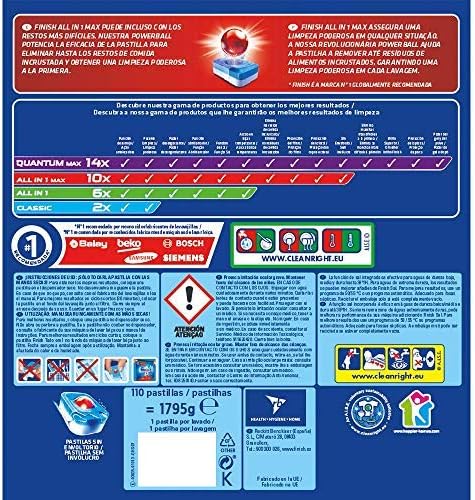 Somos la marca recomendada de lavavajillas en todo el mundo y hemos estado dedicándonos a los lavavajillas automáticos durante más de 60 años. Nuestra gama de productos está recomendada por los principales fabricantes de lavavajillas, así como por los fabricantes de vajillas y de cuberterías.FINISH ALL IN 1 MAXFinish All in 1 Max puede con los restos más difíciles. Nuestra Powerball potencia la eficacia de la pastilla para eliminar los restos de comida incrustada y obtener una limpieza potente a la primera. Combínalo con Finish Sal y Finish Abrillantador para conseguir unos mejores resultados.
