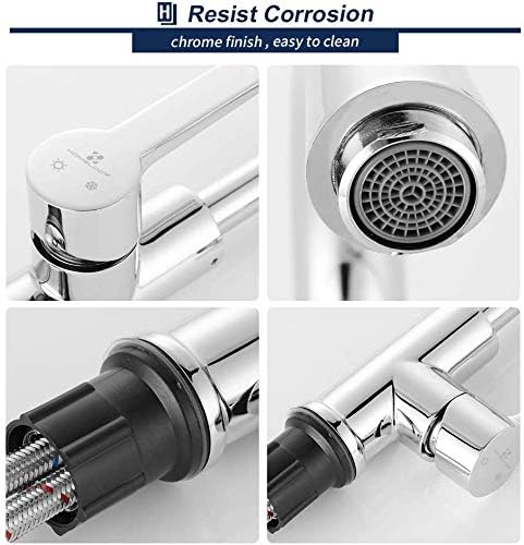 【Fácil de Limpiar】La superficie del grifo cocina está cromada, súper fácil de limpiar, hace que el grifo se ve brillante como nuevo después de varios años del uso.