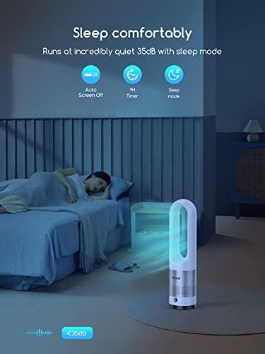 【Sueño confortable: 35 decibeles de ruido y temporizador de 9 horas】 El modo de sueño de este ventilador sin aspas es muy tranquilo y estable, con un nivel de ruido tan bajo como 35 decibeles, lo que le permite dormir tranquilamente. El ventilador está equipado con un temporizador de 9 horas y una función de apagado automático de la luz LED, que no sólo le permite disfrutar de un sueño nocturno confortable, sino que también contribuye a la protección del medio ambiente y al ahorro de energía.