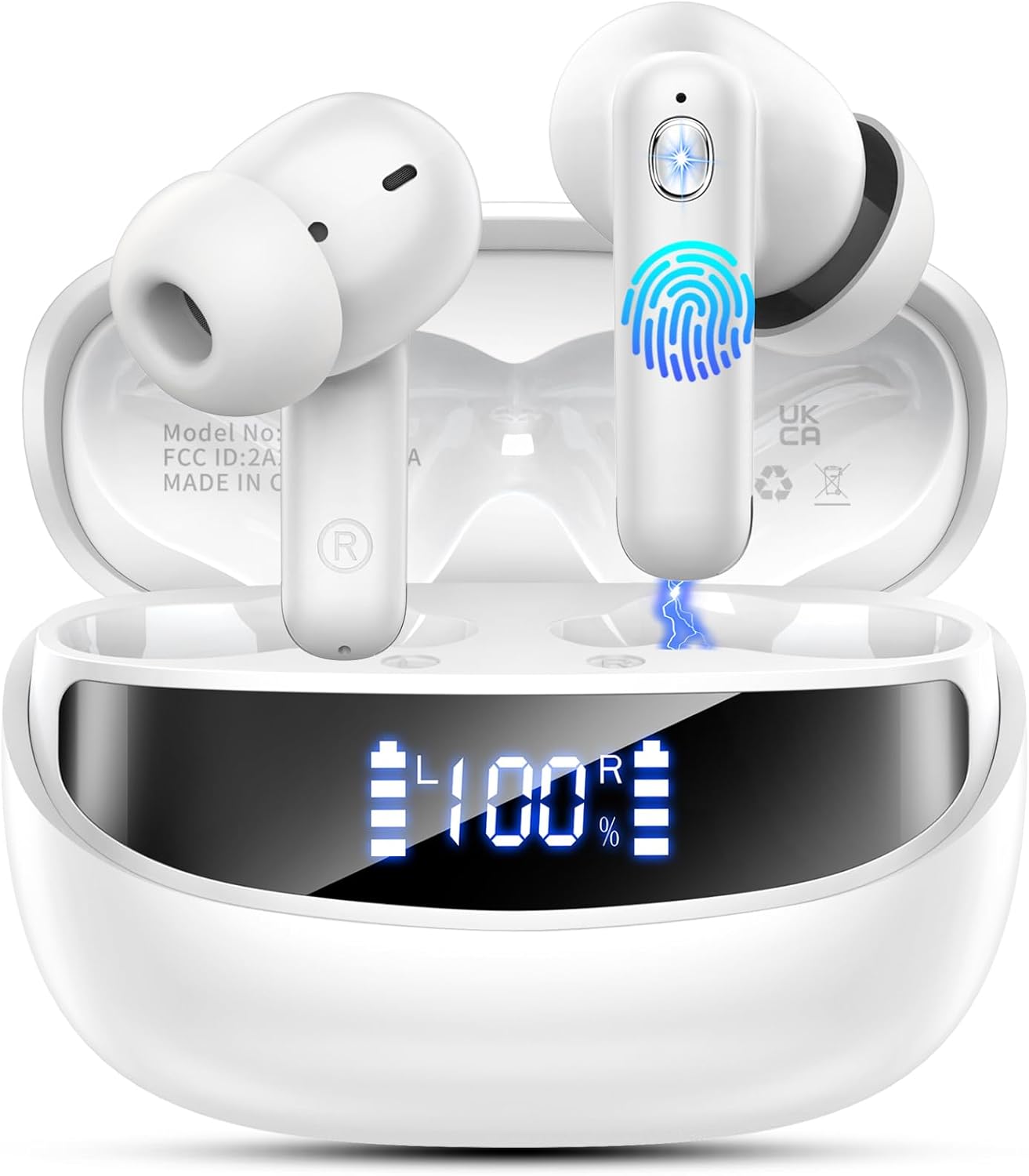 Toque inteligente y amplia compatibilidad: Los auriculares utilizan un chip táctil de alta precisión para ofrecerle un control táctil, puede responder llamadas fácilmente, ajustar el volumen, cambiar canciones o activar asistentes de voz tocando los auriculares in ear. Los auriculares inalámbricos funcionan perfectamente con la mayoría de los dispositivos habilitados para Bluetooth, como teléfonos inteligentes, tabletas, Windows PC, iOS o Android.