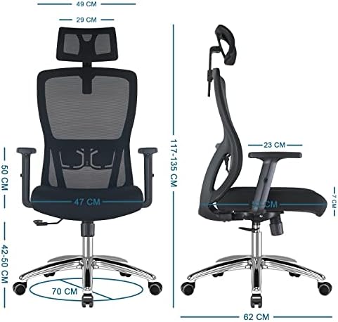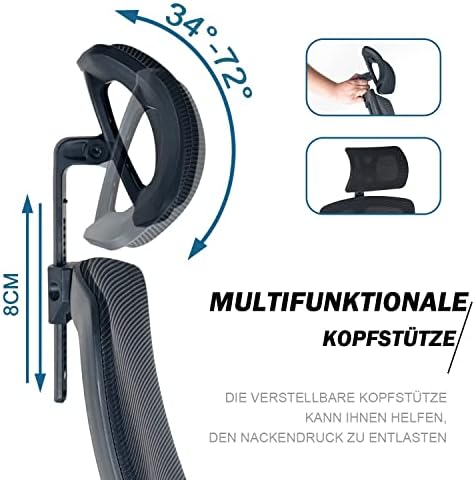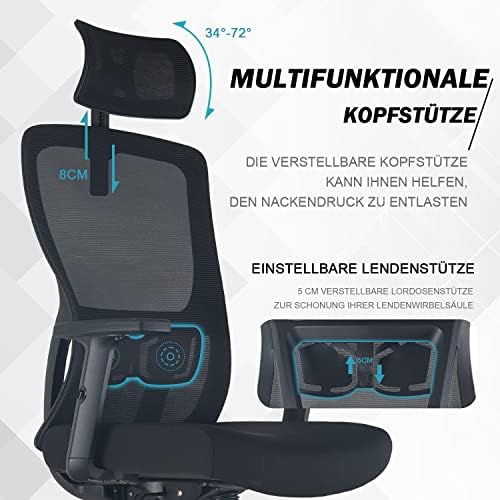 Silla de oficina ergonómica: Silla oficina Ergonómica tienen pasamanos ajustables (8cm),Soporte de cintura (5cm) y almohadas de cabeza de rotación multimensional (rotación de 8cm, 30 °). La espalda en forma de S que se ajusta a la silla de la oficina de ergonomía se adapta perfectamente a la espalda y al cuello del apoyo del cuerpo para mantener una postura de asiento saludable.Cuando se siente,se sentirá cómodo: la silla de espalda y de oficina está hecha de materiales de malla transpirable.