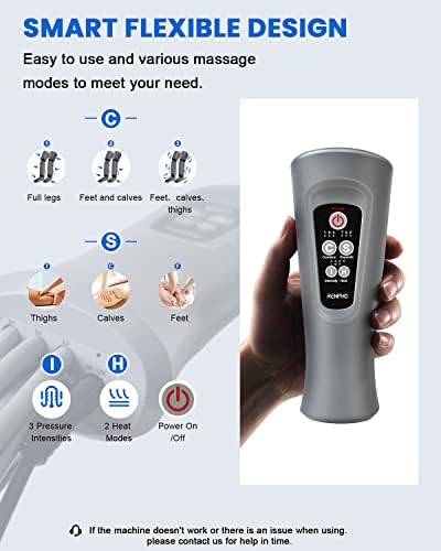 【6 modos y 3 intensidades】 el masajeador de piernas para la circulación que utiliza el controlador de mano portátil facilita el cambio de modos e intensidad. Seguramente encontrará la combinación correcta de modo e intensidad para sus preferencias.