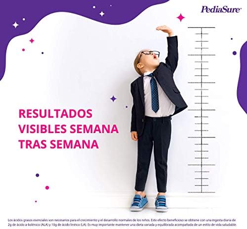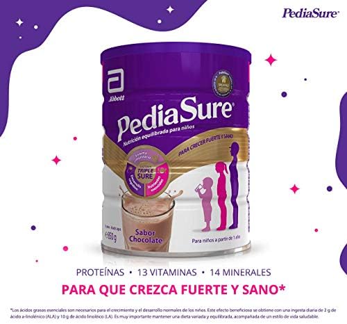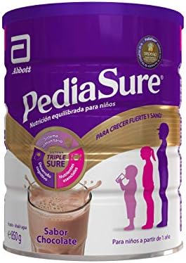 PediaSure es un complemento alimenticio especialmente desarrollado para niños a partir de un año de edad que le ayuda a crecer fuerte y sano. (2) (1) Crecimiento definido solo por altura. (2) Los ácidos grasos esenciales son necesarios para el crecimiento y el desarrollo normales de los niños. Este efecto beneficioso se obtiene con una ingesta diaria de 2 g de ácido a-linolénico (ALA) y 10 g de ácido linoléico (LA). (3) La vitamina D contribuye al buen funcionamiento del sistema inmunitario de los niños. (4) El calcio y las proteínas son necesarios para el crecimiento y el desarrollo normales de los huesos en los niños. (5) Basado en un estudio realizado por Walnut en Julio 2018 consistente en catas de sabor con 100 niños con edades comprendidas entre 4-7 años en España, de los cuales a más de 90 les gustó el sabor de PediaSure. Es muy importante mantener una dieta variada y equilibrada acompañada de un estilo de vida saludable. PediaSure es un complemento alimenticio y no sustituye la comida. Ingesta recomendada: Consumir durante las comidas o entre ellas, según sea necesario. No exceda la cantidad máxima de tomas al día: 1 toma para niños de 1 a 3 años; 2 para mayores de 4 años. Los complementos alimenticios no deben utilizarse como sustitutos de una dieta variada y equilibrada y un estilo de vida saludable. Instrucciones de uso: Para preparar 225 ml para administración oral, verter 190 ml de agua en un vaso. Añada gradualmente 5 medidas rasas y compactas (medidor incluido en la lata) de PediaSure. Remueva hasta su disolución. Una lata de 850g proporciona aproximadamente 17 tomas de 225 ml. No llevar la fórmula a ebullición. En el caso de querer consumir PediaSure templado, se recomienda templar el líquido al baño maría y mantenerlo a una temperatura inferior a 35ºC para evitar que la estabilidad de los lactobacillus se vea afectada. Advertencia: No calentar nunca la fórmula en un horno microondas. Pueden producirse quemaduras graves. Instrucciones de conservación: Almacenar la lata en un lugar fresco y seco (no refrigerado) a temperatura ambiente. La lata abierta tendrá que taparse y su contenido deberá utilizarse antes de 4 semanas. Una vez realizada la mezcla, PediaSure tendrá que taparse, refrigerarse y utilizarse antes de 24 horas. Mantener fuera del alcance de los niños. Fabricado en la UE. Distr.: ES – Abbott Laboratories, S.A. Avenida de Burgos, 91 – 28050 Madrid. Envasado en atmósfera protectora. Exclusivamente para venta en España.