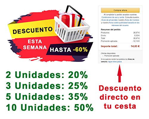 🚛 Envío Rápido y Garantía de Devolución ▶ Nuestros envíos se realizan en 24 / 48 horas y tienen un tiempo de tránsito mínimo, con lo que usted recibirá los artículos en un plazo máximo de 72 horas (en días hábiles) desde que ha realizado la compra. Por otro lado, respondemos ante cualquier problema con el artículo con una política de devoluciones que garantiza la posibilidad de retornar el producto si hubiese alguna incidencia con el mismo con reembolso del importe total de su compra.