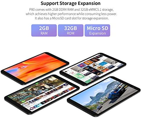 La tableta Android 10 de 8 pulgadas tiene 32 GB de almacenamiento interno, pero puede instalar Micro SD (hasta 128 GB) como almacenamiento externo para disfrutar de películas, juegos, cómics, música, fotos y juegos.