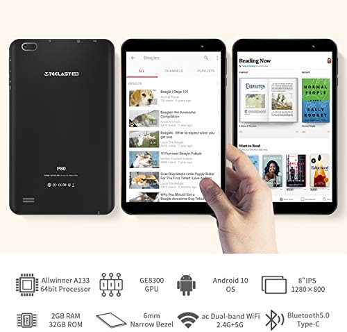 PANTALLA IPS DE 8 PULGADAS CON TOQUE DE DIEZ PUNTOS: ángulo de visión de 178 °, pantalla de alta resolución de 1280 x 800, tableta de alta resolución. Ideal para el uso diario, pero también para cargas de trabajo profesionales. Experimente la reproducción de video de alta resolución y la navegación de imágenes sin precedentes.