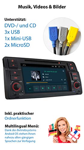 Bluetooth manos libres con importación agenda y reproducir música de forma inalámbrica desde el dispositivo Bluetooth a través de A2DP + Almacenamiento interno 32GB + 4x puerto USB (hasta 2TB!) + 2x Ranura para tarjetas SD (hasta 256 GB!) + MP3, WMA, AVI, MPEG4 etc + DVD y de CD