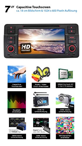 18 cm (7″) de pantalla táctil + pantalla ancha de alta definición 16:09 (HD) con 1024 x 600 píxeles + Mirroring de pantalla con teléfono inteligente Android a través de USB / WLAN y teléfono inteligente iOS solo a través de WLAN