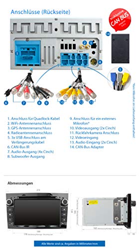 Norma DIN doble (2DIN) + Cámara de visión trasera IN, Subwoofer OUT, Mando a distancia del volante + Volumen de entrega CANBUS, antena GPS y WiFi