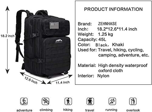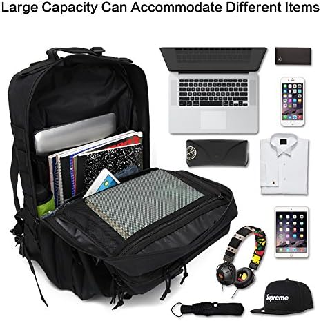 Gran Capacidad – Los grandes compartimentos de almacenamiento interior multicapa pueden acomodar una gran cantidad de equipos para exteriores y también satisfacer sus necesidades diarias de viaje. Adecuado para ejercicios físicos, viajes al aire libre, senderismo y otras actividades al aire libre. Tamaño de la mochila táctica: 11,4 » x 18,2″ x 12,6 «/ 29 x 46 x 32 cm; Capacidad: 45L